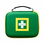 Första Hjälpen-väska konstruerad i ett slitstarkt gummiliknande material med matt yta för att hålla damm, fukt och smuts utanför.